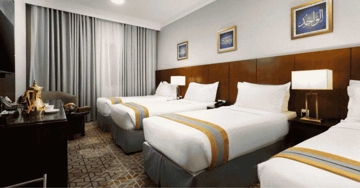 Emaar al Manar Hotel Makkah offers multiple room options designed to accommodate different group sizes. Whether traveling alone, with family, or in a small group, guests can choose rooms that fit their needs. The hotel provides DBL rooms for two guests, TRP rooms for three guests, and QUAD rooms that can comfortably host four people.