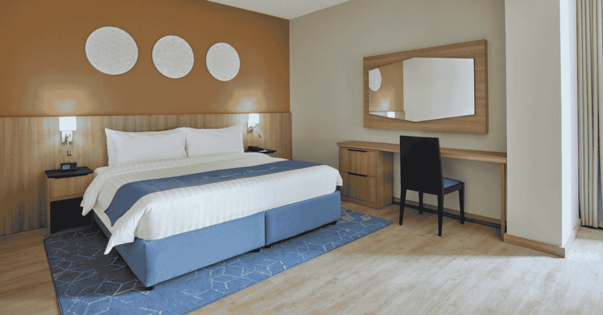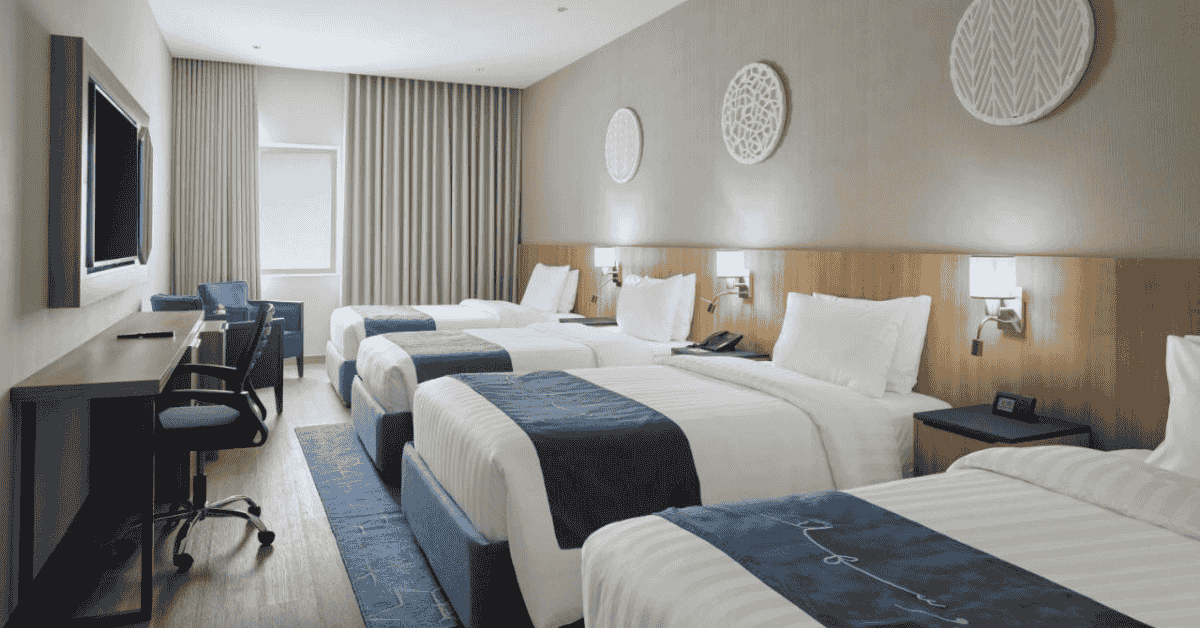 The hotel offers multiple room types to accommodate different group sizes, from couples to families and shared travelers.